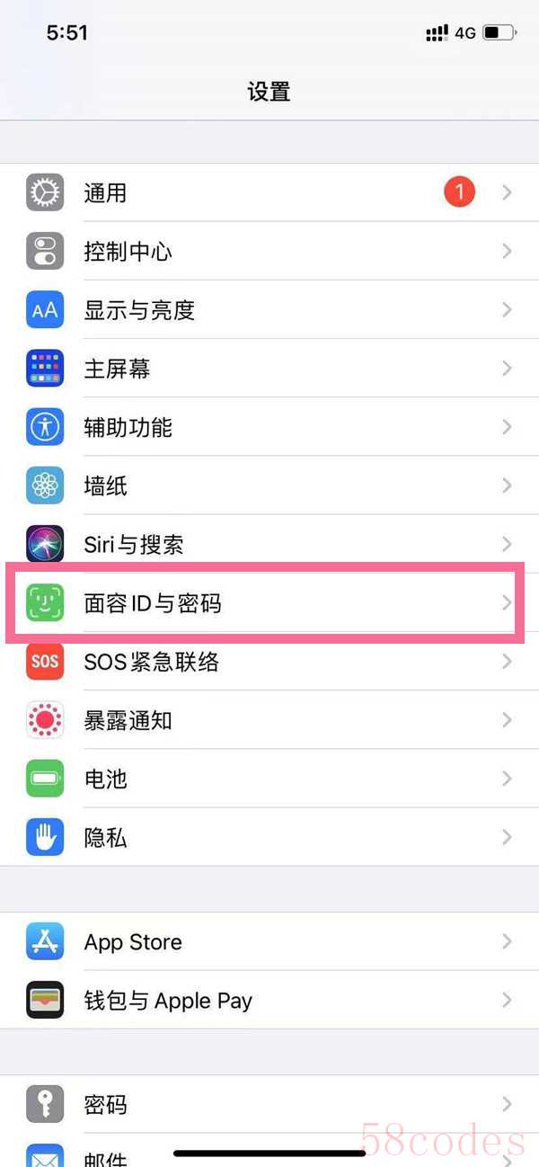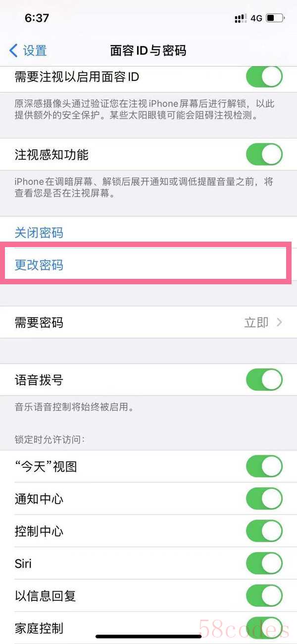 注意: 如果你使用的是 Face ID(面容识别),这里的标题可能是“面容 ID 与密码” (Face ID & Password)。