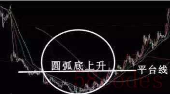 4、股价在一段时间内,由缓缓下跌转为底部平移或底部震荡,最终缓慢上升,类似圆弧形状;股价一旦突破圆弧平台就会加速上行趋势。