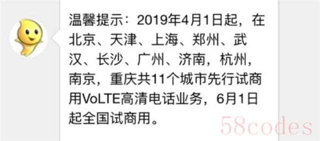 2019年4月,中国联通VoLTE将在北京、天津、上海、郑州、武汉、长沙、广州、济南、杭州、南京、重庆共11个城市先行试商用,直到6月1日开启全国试商用。