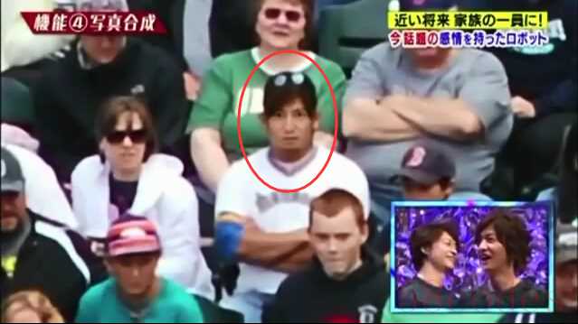 拍照合成功能很很简单,Pepper变成了迷之外国人口音,通过Pepper的眼睛来拍摄面前的人脸,并将其合成到另外一张人山人海的照片中。之后Pepper会让你从中寻找你自己的脸,算是一个互动的小游戏。