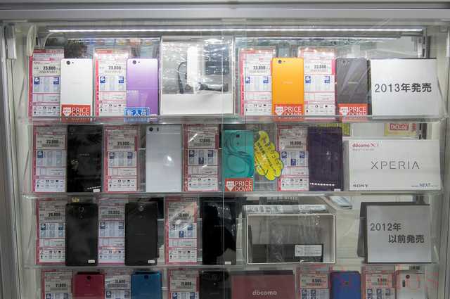 另外我们再来看看外国游客的购买力,据说很多外国游客很喜欢在二手店里买些1万日元左右(约557元)的iPhone5或iPhone 4s回国,这两款机型也是这家二手店中出货量最高的。毕竟价格便宜、各种功能都有,性价比还是挺高的。因为涉谷一代外国游客很多,所以这家二手店中会有日语、英语、中文这三个语种的店员常驻。不过对于我来说,比起便宜的iPhone,我还是更想要上面图正中间那个绿色的初音版索尼Xperia A,毕竟这款限量39000台的手机原价可要8万多日元(约4600多元),而且还是在国内没有上市的版本。