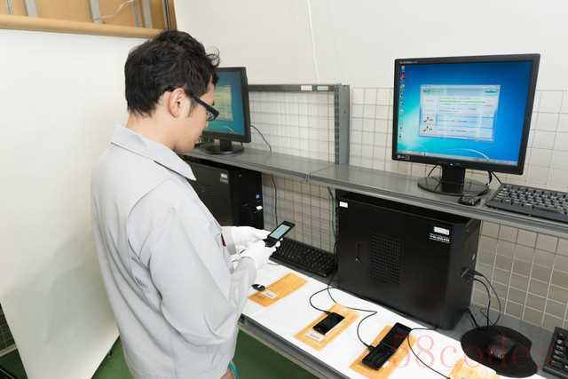 举例来说,手机是否有进水、屏幕是否有损伤、电池是否膨胀、按键操作是否正常,这些都是无法通过app检测的,只能人工靠自己的眼睛来判断。另外支持手机钱包的手机还需要检查FeliCa芯片是否正常、是否有剩余的电子货币。像这样的检测工作,工作人员在1小时内要检测5部手机,每天大概要检测35-40部手机。