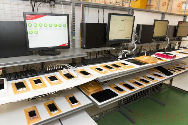 Android机型和功能机到这一步基本就算是“加工”完了,但iOS设备还需要进行一个额外的步骤,就是激活。GEO在物流中心备有SoftBank、DoCoMo、au三家运营商的各尺寸SIM卡,在完成数据删除的步骤之后,会使用这些SIM卡对iOS设备进行激活,保证用户购买到二手iPhone时开机就是HOME界面,不用自己激活。之所以这样做,是因为有很多外国人在日本买二手iPhone,插入外国SIM卡时无法激活,因此GEO决定在店内贩卖的iPhone全部都要提前激活。因为这是个非常耗时间的体力活,所以激活工作最多有四个人来担任。