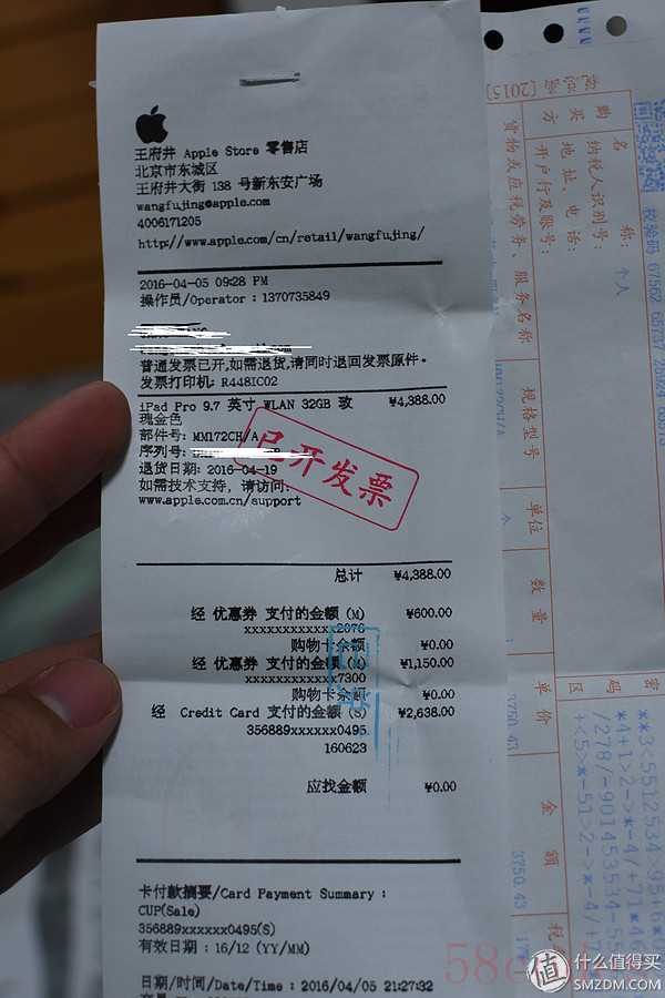 后来,清明扫墓回来顺路去王府井APPLE STORE看了看新出的ipad pro 9.7,还是挺喜欢的,可以给闺女当画板(我所有忽悠媳妇儿买电子产品的理由都是闺女。。。OSMO录像使,D7200照相使巴拉巴拉)顺路问了下水果自己以旧换新5S值多少钱,店员用我媳妇儿手机(对,当初生气价格问题楞没给媳妇儿换6SP,媳妇儿对于6S的升级项也没大兴趣,已承诺7P。。。)查了5S值多少,店员一看1150。我去,比京东多300,问能不能两个手机一起换,店员说不可以,最多一个手机一个PAD。我俩心动了。第二天,也就是昨天,拿着我的闲置5S和家里的ipad mini奔向了王府井,换!
