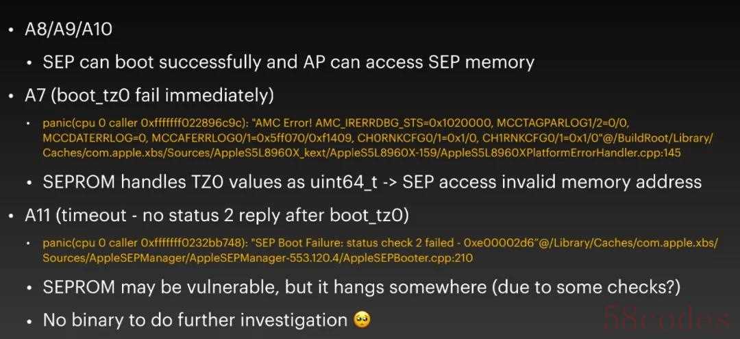 盘古团队还现场公布了,一个苹果 Secure Enclave(安全隔区)处理器上,不可修补的漏洞。
