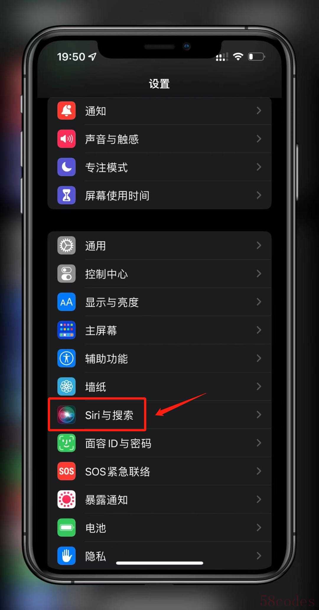 第️1步:在手机【设置】中找到【Siri与搜索】。