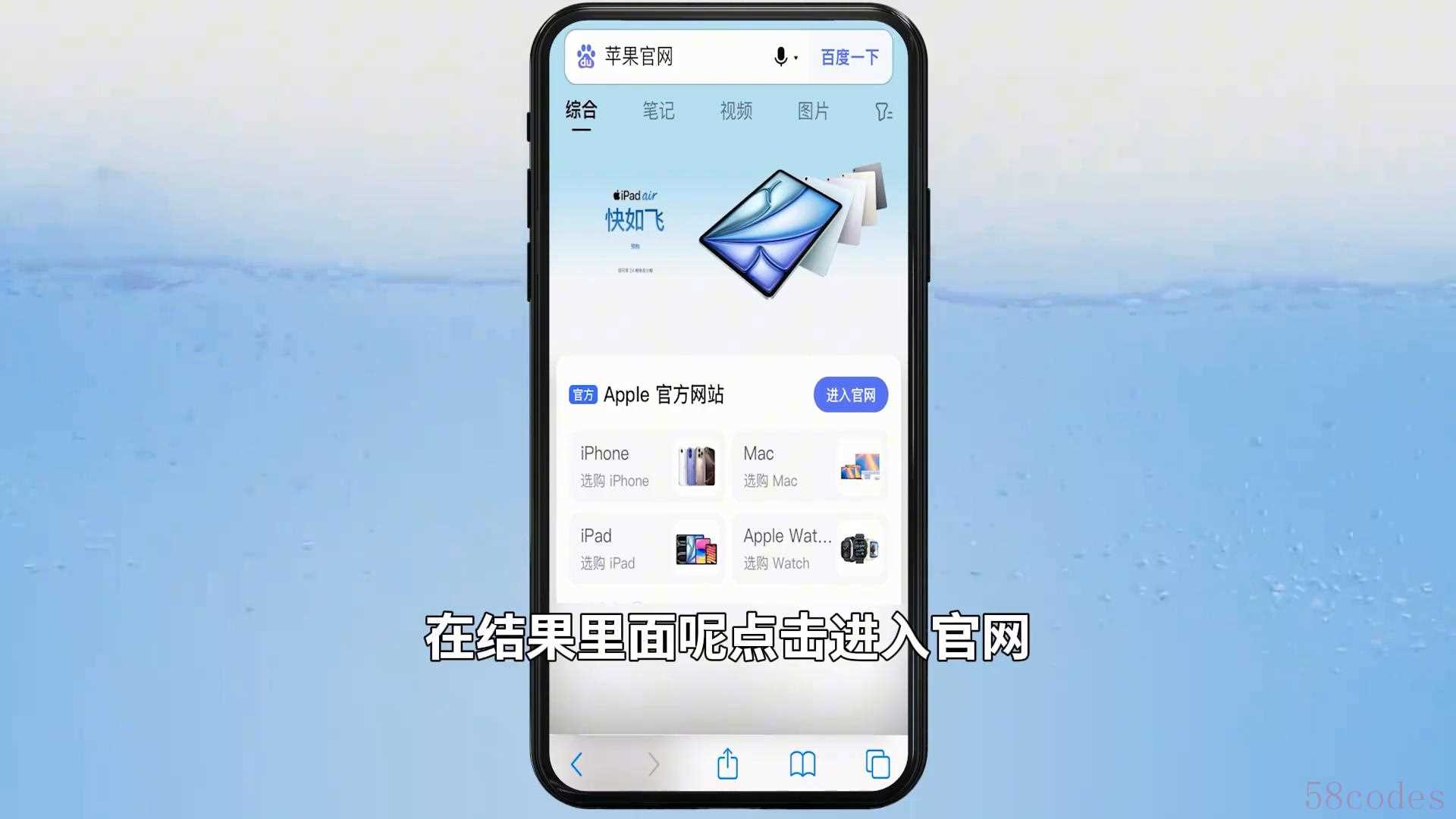 ·首先打开浏览器,在浏览器里面输入苹果官网,点击右下角的前往,在结果里面点击进入官网。