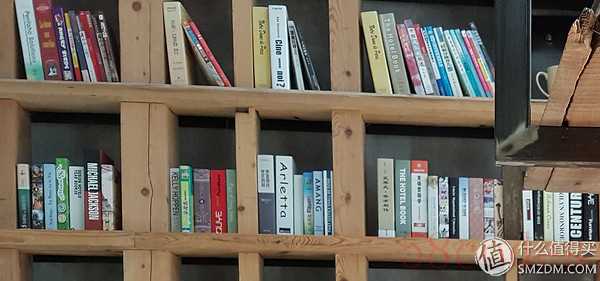 细节方面,画面中心无疑S6e+更能分辨到更多细节,包括灯罩的纹路、铁架上贴纸的字体等等,中心画质还是比较锐利的。但到了边缘画质上,或许是由于光圈比iPhone更高的原因,S6e+的细节表现不够稳定,尤其是对比第二组背景上书籍的字体时,iPhone所拍摄照片上背景字体依然有着比较高的纯净度,但S6edge+在书籍这一组对比里,边缘画质出现了模糊的状况。