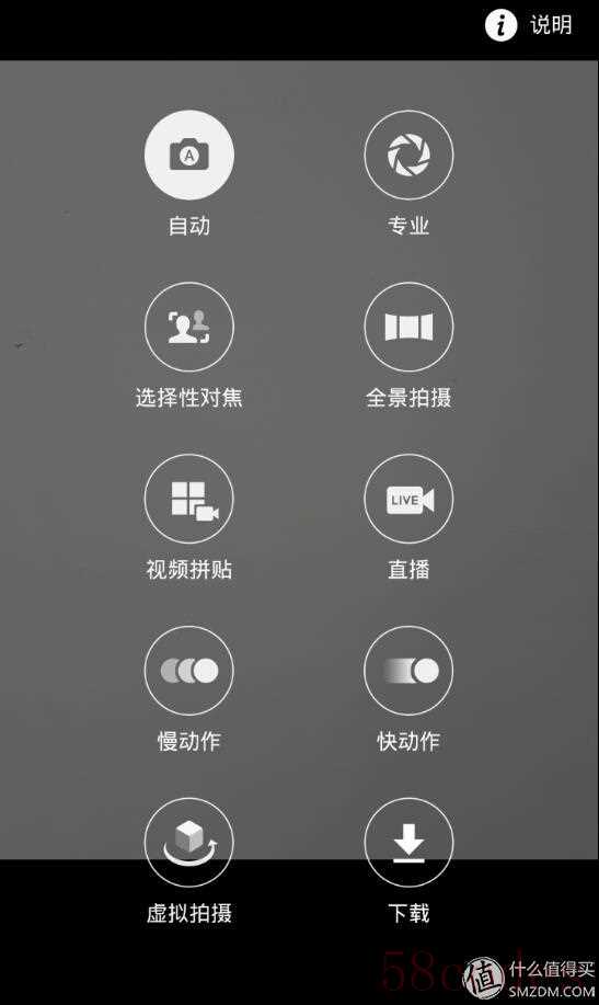 而如果点击左下方的模式按钮,就会打开各种黑科技功能,慢动作/快动作视频、视频拼接、LIVE录制(需翻墙)等等,可玩性更高。