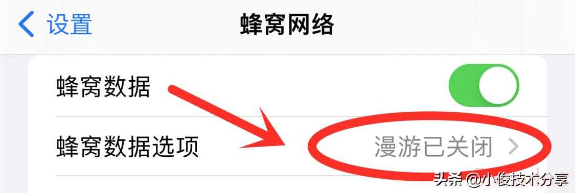 打开之后,就会进入到【蜂窝网络】设置界面,在这里我们可以看到有一个【蜂窝数据选项】的开关,我们点击它
