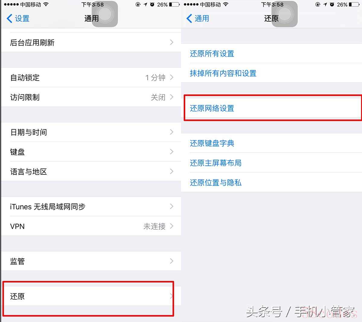 ▲进入【设置】-【通用】-【还原】-【还原网络设置】