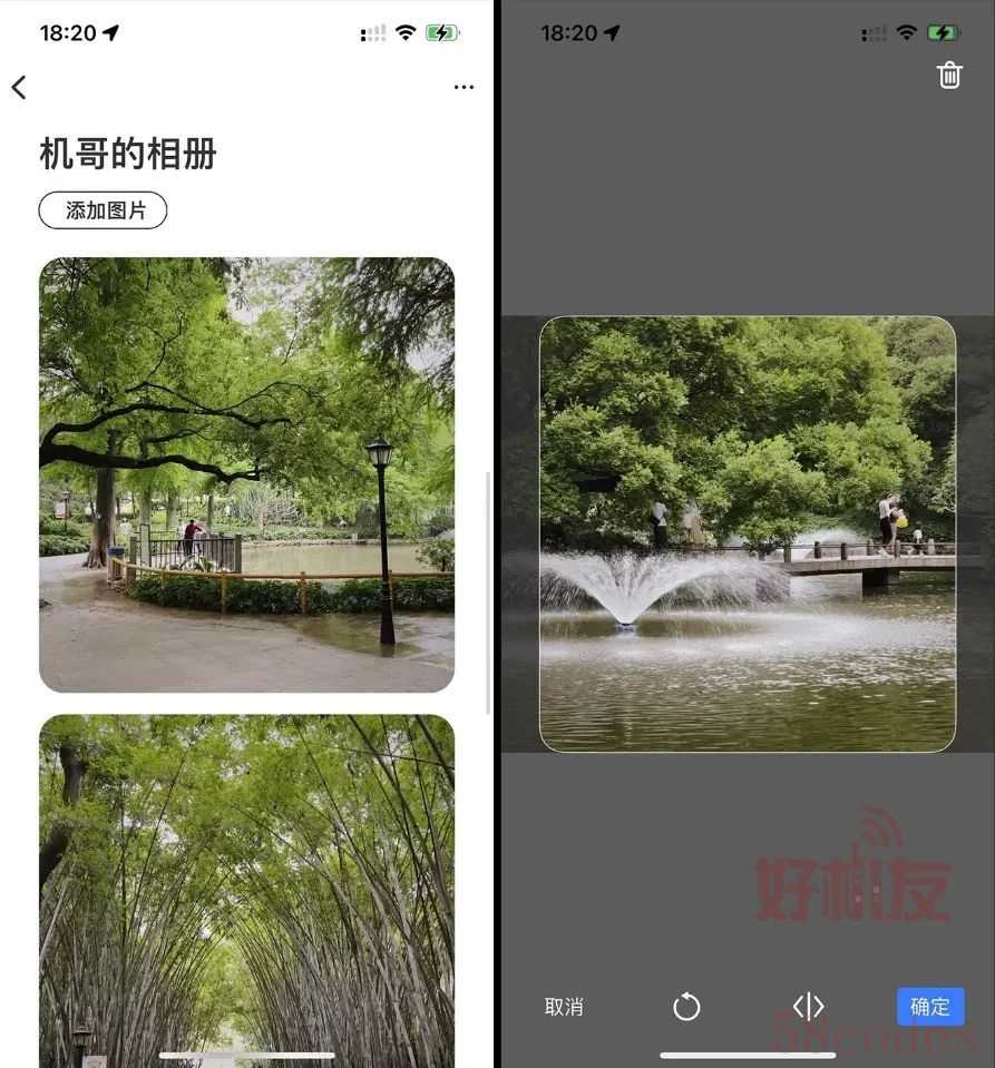 进去App后,选中我们想要放在桌面的照片。这个时候,还可以对每张照片显示的区域,进行微调。