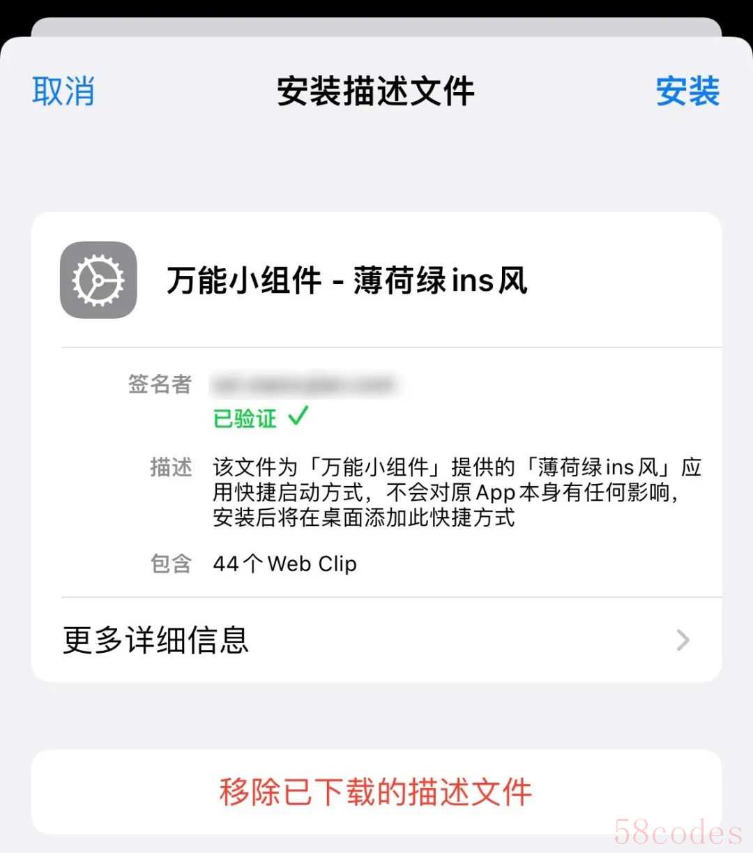 然后去到iOS设置的首页,会提醒安装万能小组件的描述文件。