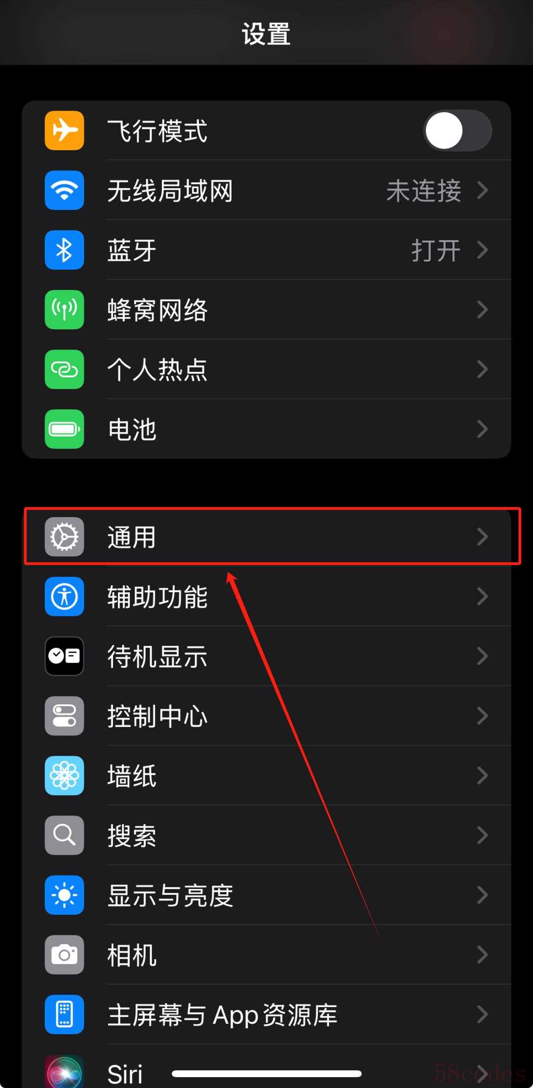 点击“通用”选项。