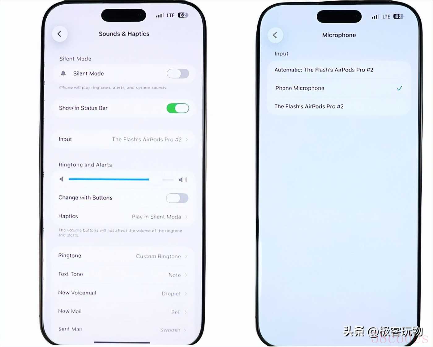 iOS 26通过"设置" > "声音与触感" > "输入"引入了麦克风输入自定义: