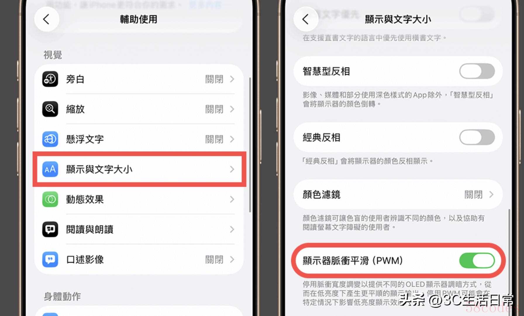 为了避免 OLED 屏幕因亮度调节而造成的闪烁感,iPhone 17 全系列新增了显示器脉冲平滑功能。对于有闪烁敏感的用户,这一功能可以通过设置 > 辅助功能 > 显示与文字大小中启用,大大减轻眼睛疲劳。