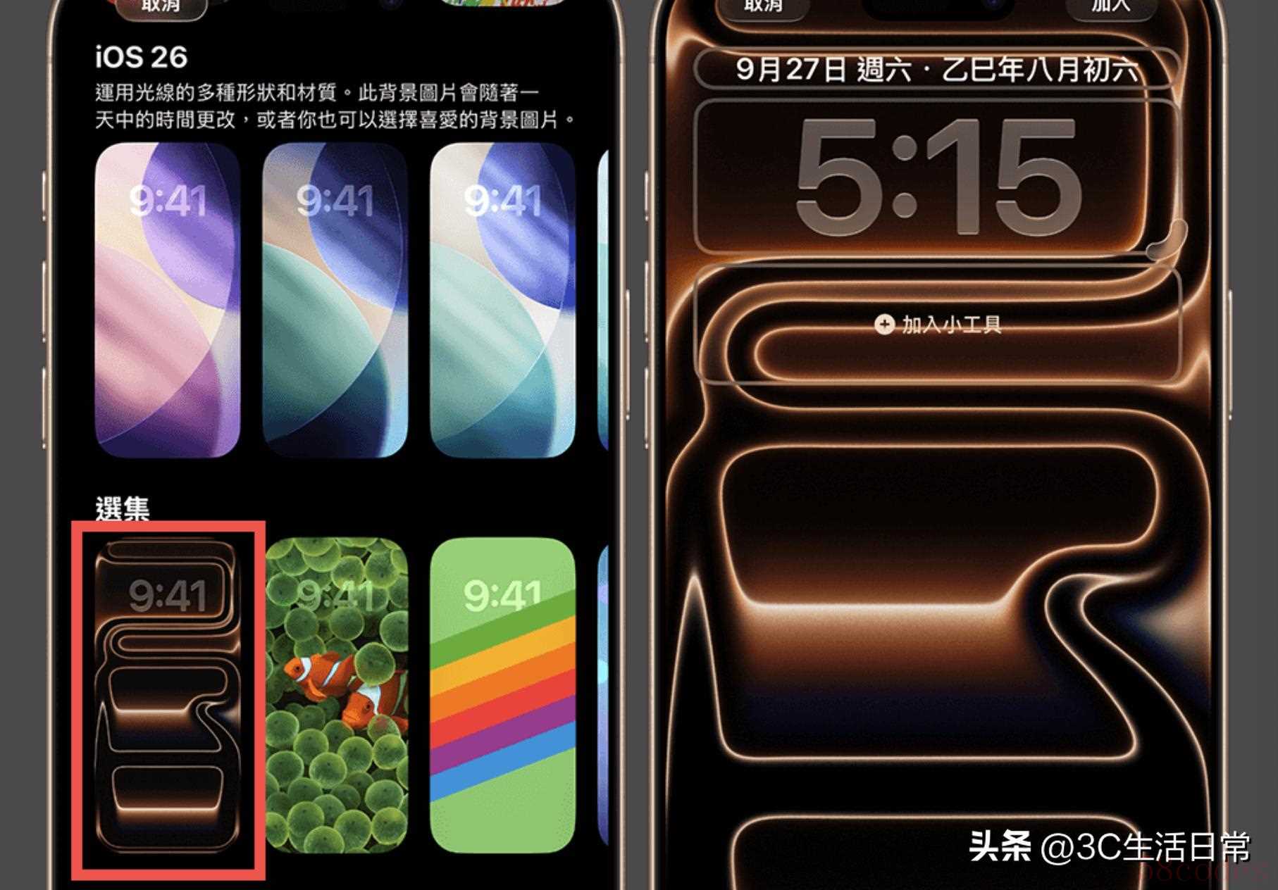 iPhone 17 配备了新的专属桌布,用户可以根据设备的颜色选择不同风格的背景。只需在锁屏界面长按背景,即可选择和机身颜色相匹配的桌布,为手机增添个性化色彩。