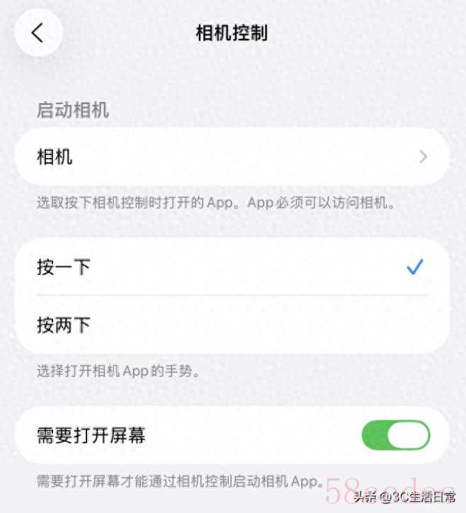 - 选择【相机控制按钮】,将其设为“按一下”即可开启相机。