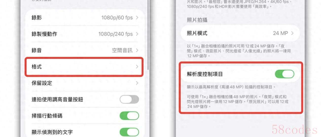 想开启高画质其实并不复杂,先打开设置,找到相机,再点格式,然后把“分辨率控制项目”打开。说白了,这一项决定相机界面里能不能直接切换到48MP。iPhone17 和 iPhone Air 的路径是一样的,而 Pro 机型会显示为“ProRAW与分辨率控制项目”,多出一个 ProRAW 格式选项,像 JPEG、JPEG-XL这些格式都能选择。ProRAW是给愿意在后期修图的人准备的,平常拍照其实不强求用它,除非你想要后期拉细节。
