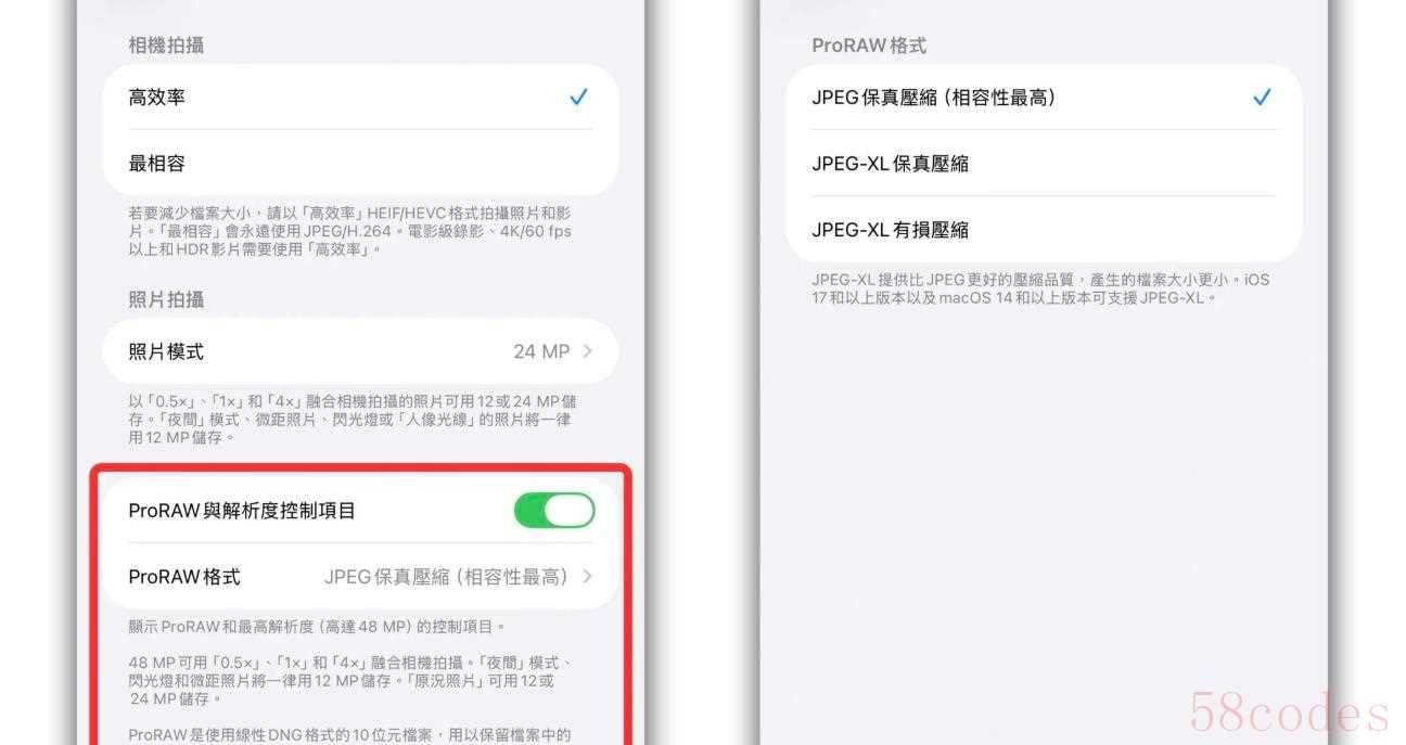 2. "切换到 ProRAW 模式":