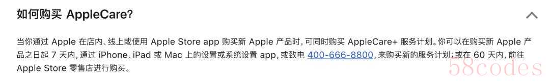 还有一点就是,网上每年都有人入手新机后没玩多久就摔碎了,就是这种情况,也可以补买AC+服务——只要在产品购买7天内,都可以在自己的设备或者拨打官方电话购买。如果产品没出问题,也可以在60天内去线下Apple Store零售店购买,相当于再延保了2个月,同样很划算。