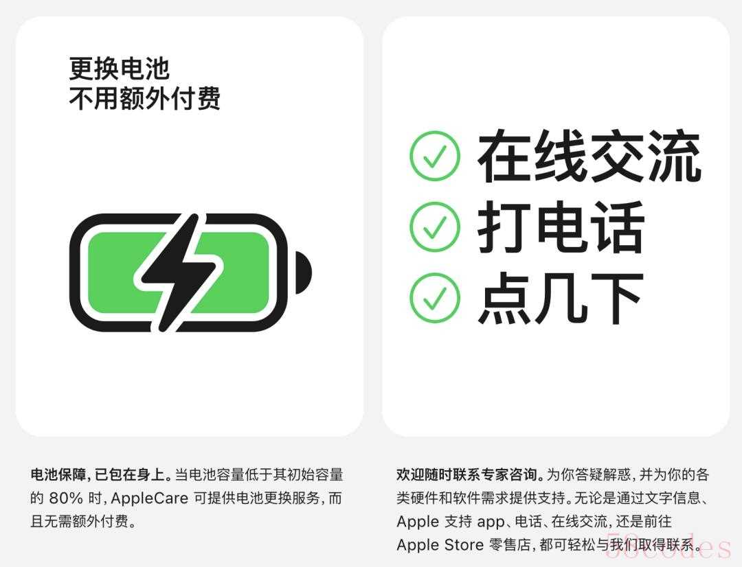 还有一个很划算的地方,就是购买AC+后,在服务时间内,只要电池健康度降低到了80%以下,就可以免费更换一块官方原装电池,这也是很有吸引力的一个条款。