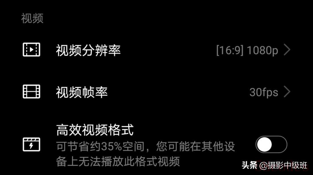 下图(图五),是视频拍摄的相关设置。一般用默认推荐就可以。特别重要的视频,可以把分辨率设置为4K,但分辨率高比较占空间。