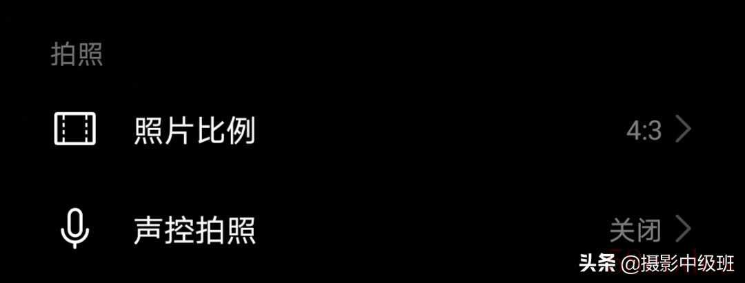 下图(图三),“照片比例”,我的建议是正常照片尺寸4:3,没有特殊要求不要设置成1:1或全屏。前者方形构图,呆板;后者照片太长,不好驾驭。“声控拍照”,就是用声音控制快门按钮。当“开启”这个功能后,里边有两个选项,一个是喊“茄子”,可以释放快门;另一个是随便大喊一声,就可以释放快门。