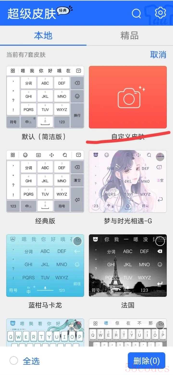 页面内的皮肤种类非常多,有本地和精品,且大多都是免费使用的。更重要的是你可以自己定义皮肤,自定义皮肤就是你可以在你的相册里选择自己喜欢的图片作为键盘的背景。