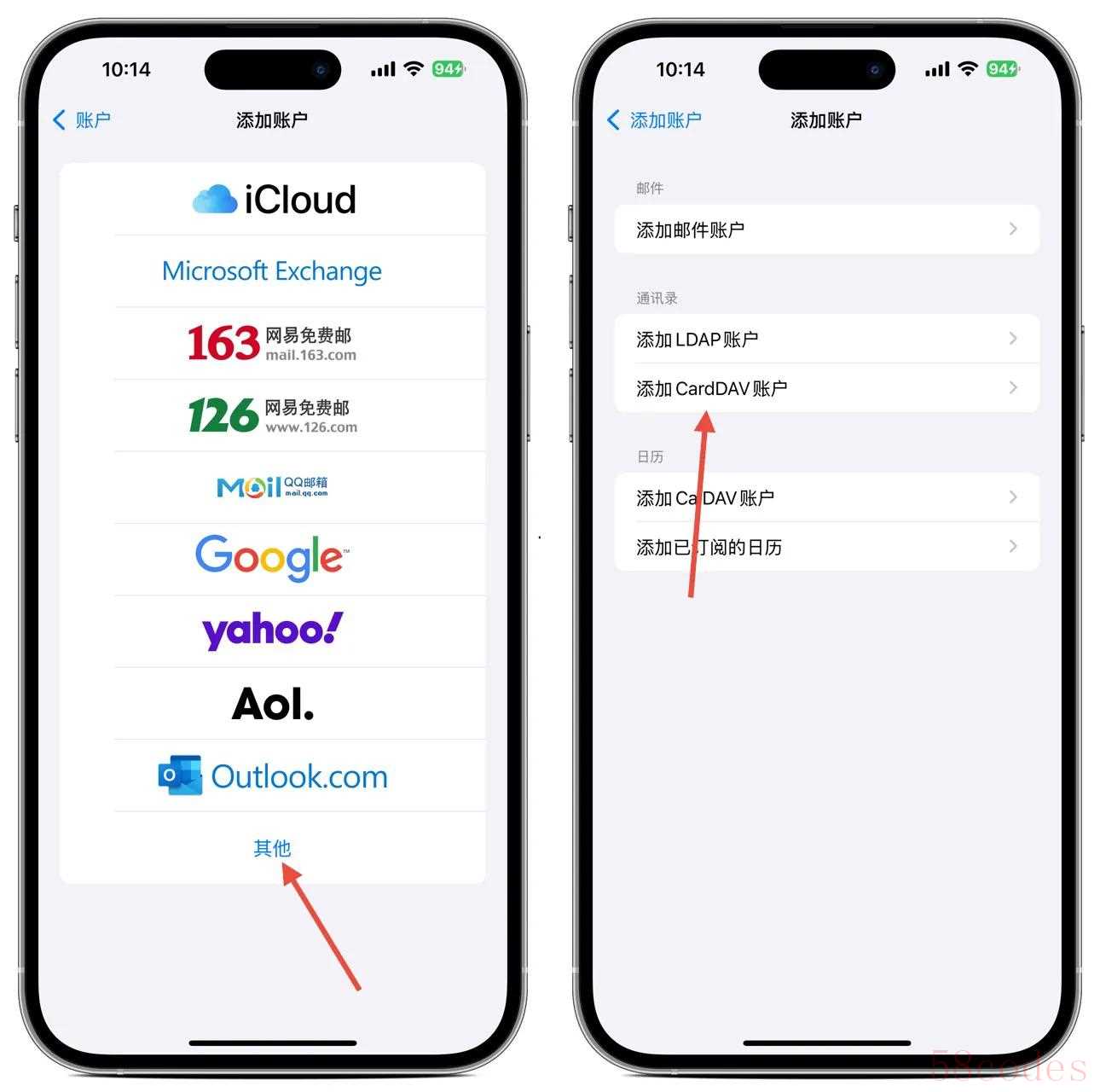 2、接着选择“其他”,进去之后选择“添加CardDAV账户”。