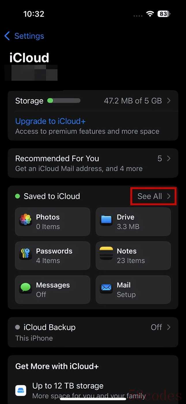 查看“已保存到 iCloud”部分。点击“查看全部”。