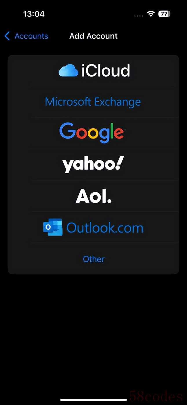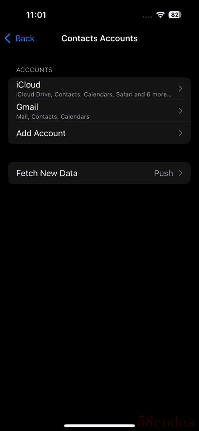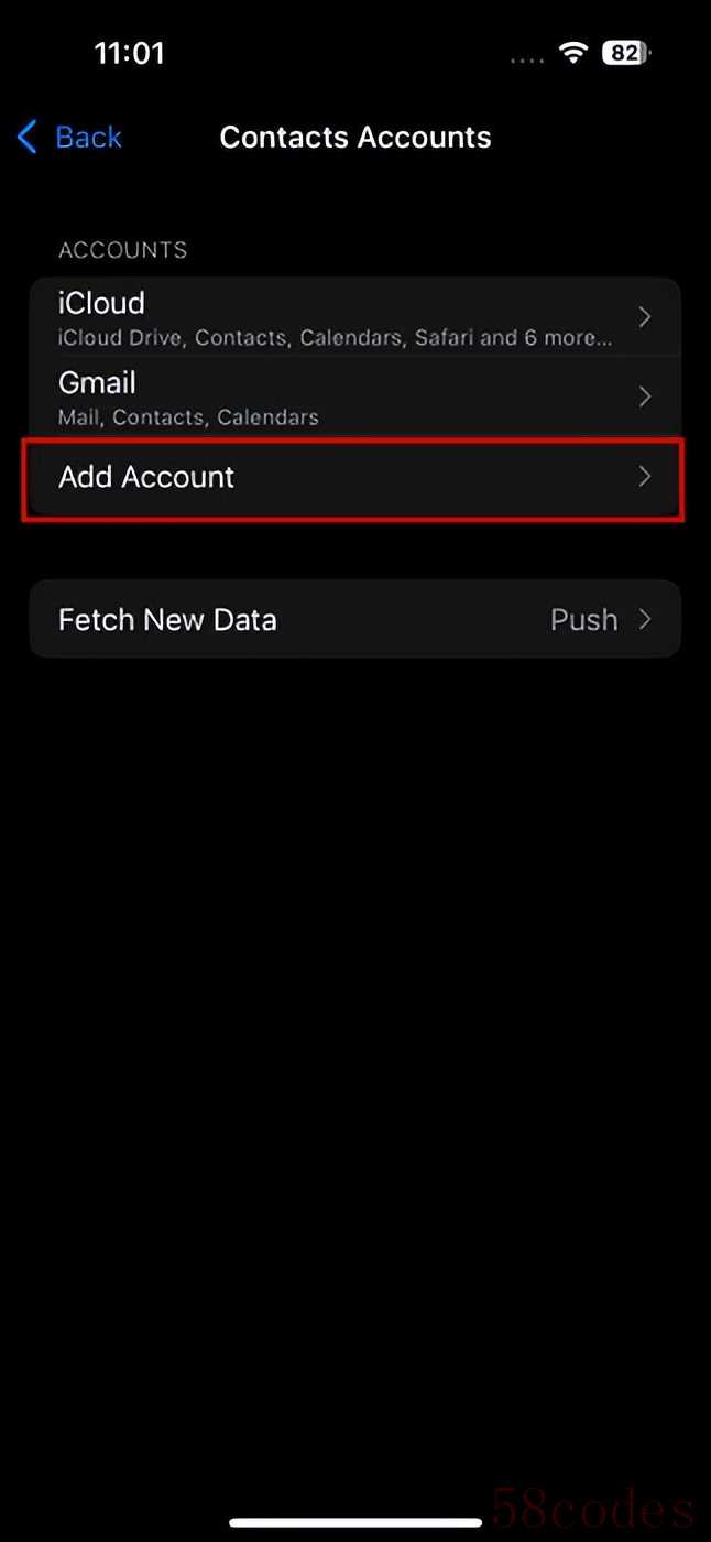 此步骤可确保您所有帐户的联系人均可在 iPhone 上显示,从而帮助解决 iOS 联系人姓名不显示的问题。如果您发现某个帐户丢失,请按“添加帐户”按钮。