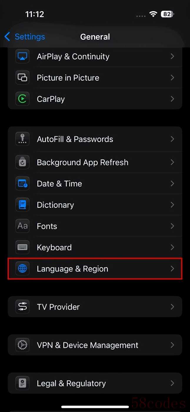 6. 更改您的地区有时您的 iPhone 无法识别所选的地区,因此可能无法正确显示联系人姓名。解决此问题的一个潜在有效方法是更改 iPhone 的地区设置。导航至“设置” -> “通用”->“语言和地区”。
