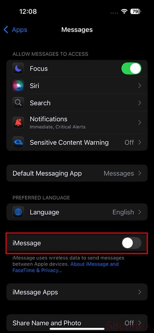 此操作将显示您的所有联系人,包括之前丢失或隐藏的联系人。仅供参考:检查如何在 WhatsApp 中安排消息。8.重置消息设置如果您在“信息”应用中遇到此问题,请尝试重置该应用的设置。为此,请打开“设置”->“应用程序”->“消息”。在这里,找到“语言”下方的“iMessage”选项。将其关闭,然后再次启用。
