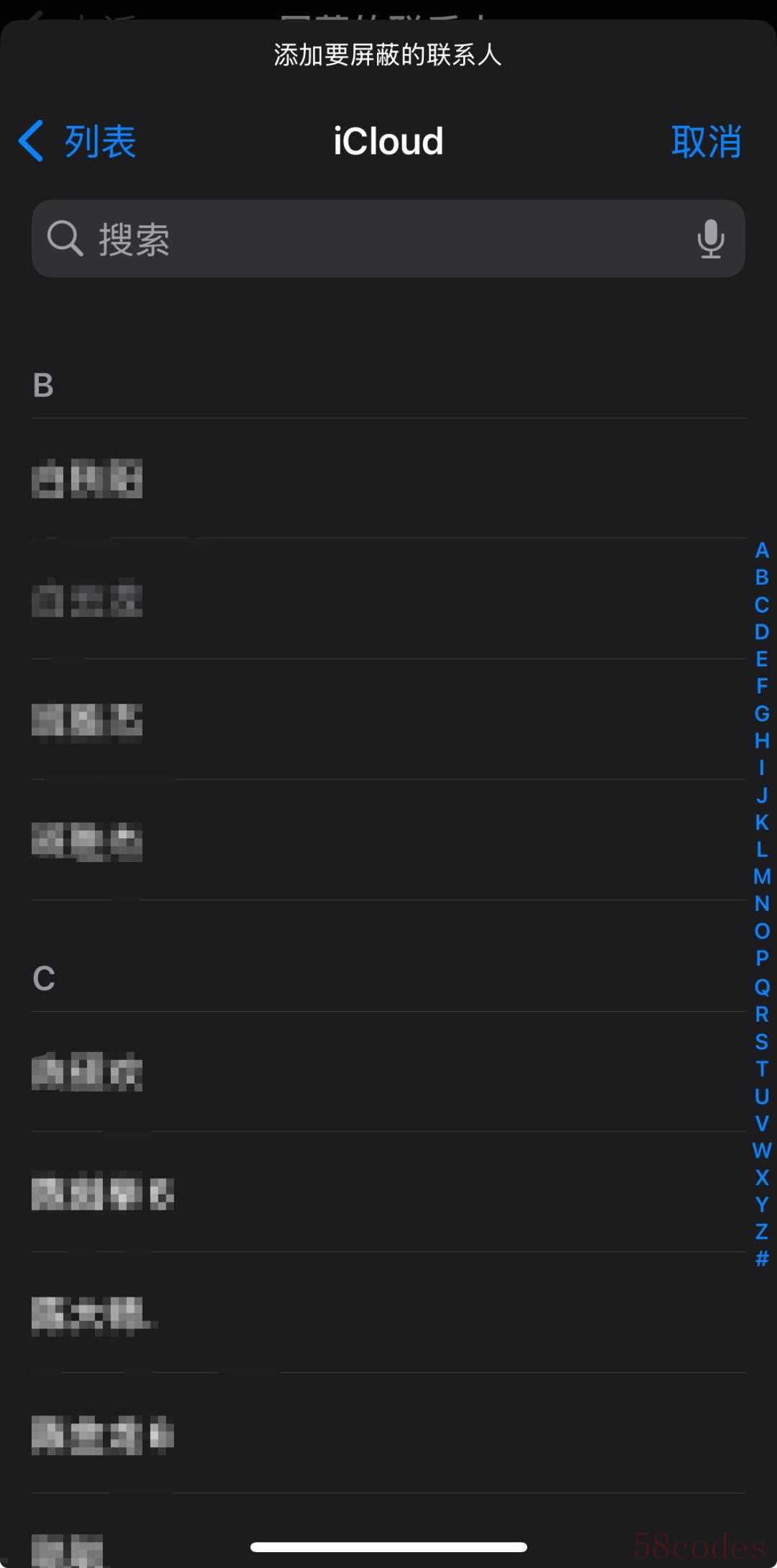 选择需要屏蔽的电话联系人即可。添加之后我们就不会收到来自拦截名单的来电、信息、电子邮件或FaceTime通话。