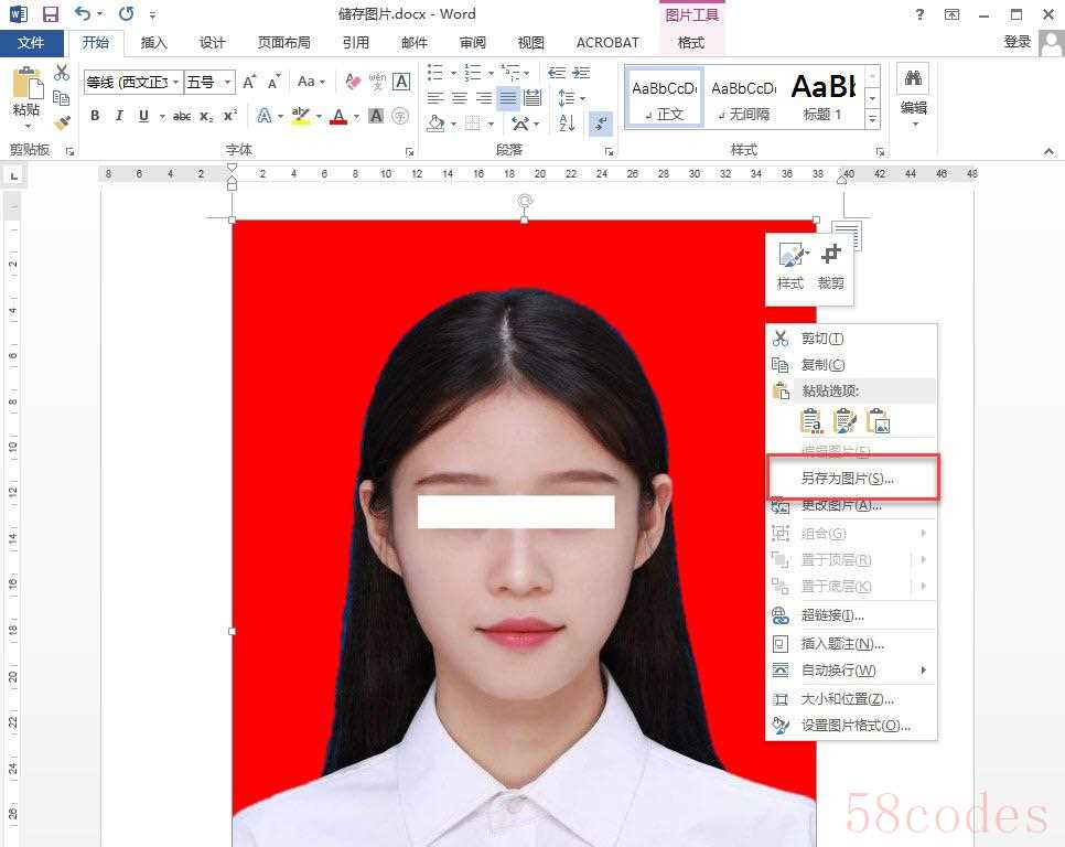 第七步:将图片导出。同时按下键盘上的【Ctrl + C】键复制图片,将图片粘贴到微信或者QQ中,然后将图片下载下来。如果您的计算机未联网,您可以将复制后的图片粘贴到Microsoft Word中,右键单击图片,左键单击右键菜单中的【另存为图片(S)】,设置证件照保存路径、照片格式、照片名称等参数,左键单击【保存(S)】按钮即可保存证件照。