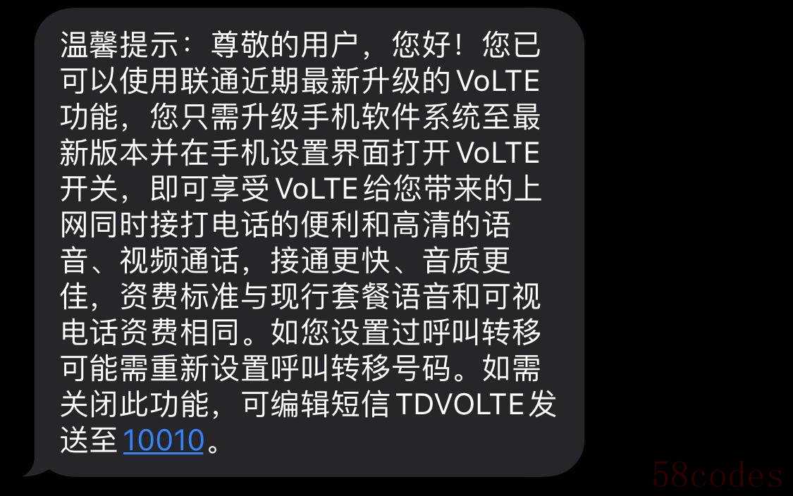最后当你全部设置成功之后,就会收到一条运营商发来的通知短信,告知您已经开通了VoLTE,至此VoLTE的设置全部完成。