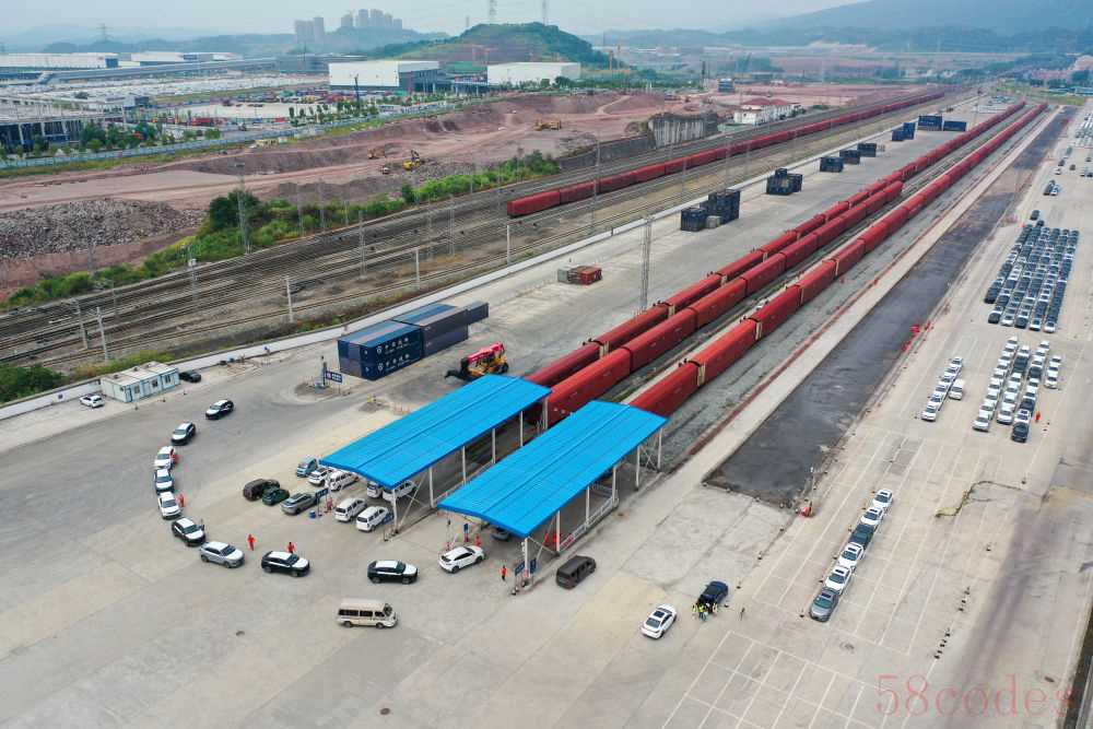 2022年7月21日,中铁特货商品车在重庆鱼嘴站等待装车(无人机照片)。列车经由新疆霍尔果斯口岸换装出境,最终抵达俄罗斯莫斯科多斯基诺站。依托中欧班列物流快速通道,商品车整车从重庆运输至莫斯科全程时效大幅提升。
