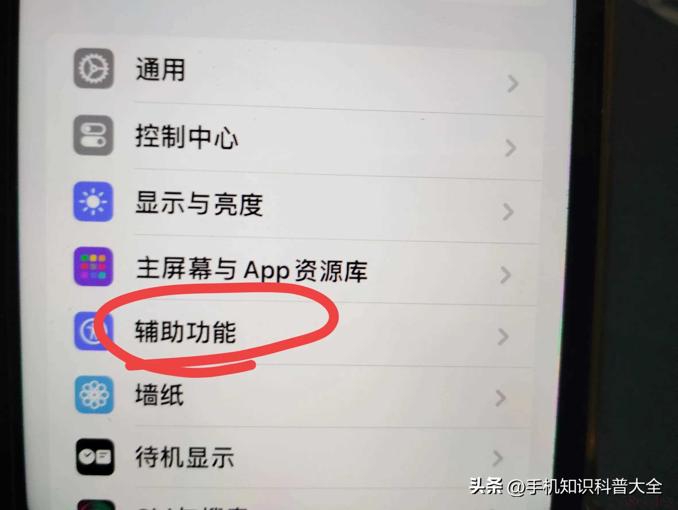 这个功能有点高级,类似于安卓手机的悬浮球。在设置页面中,往上滑打开辅助功能,(如上图所示)