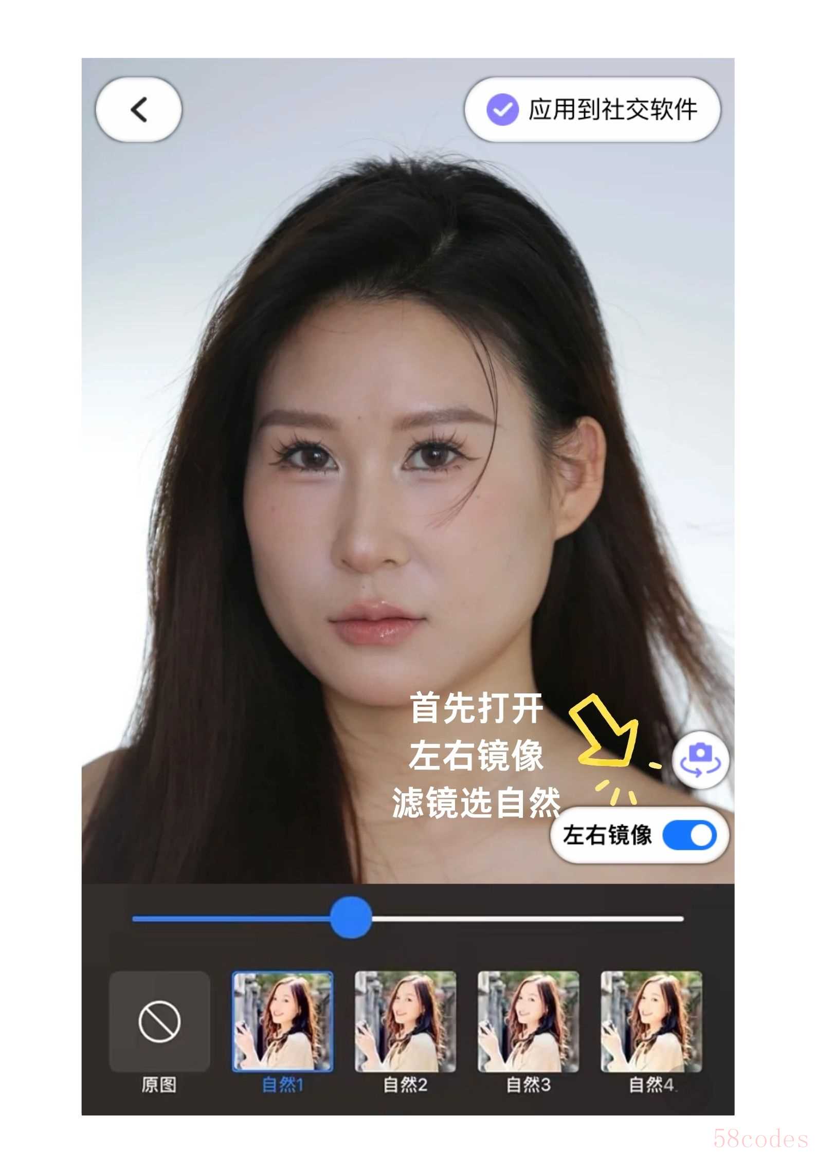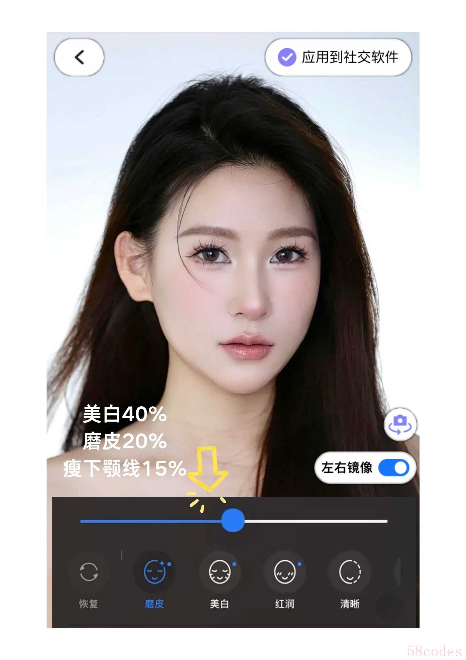6. "找到并拖动“美颜”滑块:" 在“调整”界面中,向下滚动,找到名为“美颜” (Smoothing) 的滑