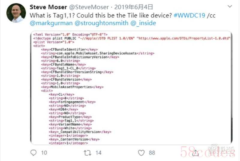 一位名叫“Moser”的用户发现,iOS 13的代码中有一个将蓝牙设备与“Tag1,1”进行配对的命令,紧接在一个月后,就有报道称苹果正在iOS 13测试版中开发一个代号“B389”的个人物品定位设备,还放出了设备概念图。