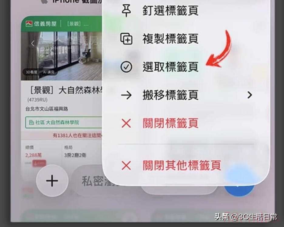 小技巧:用双指在页面上往下滑,可以快速多选多个标签页,节省更多时间。