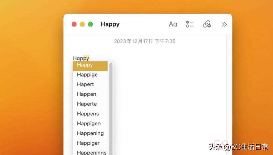 在备忘录中输入时,按FN + F5,自动弹出拼写推荐,快速完成单词输入,打字不再卡壳。