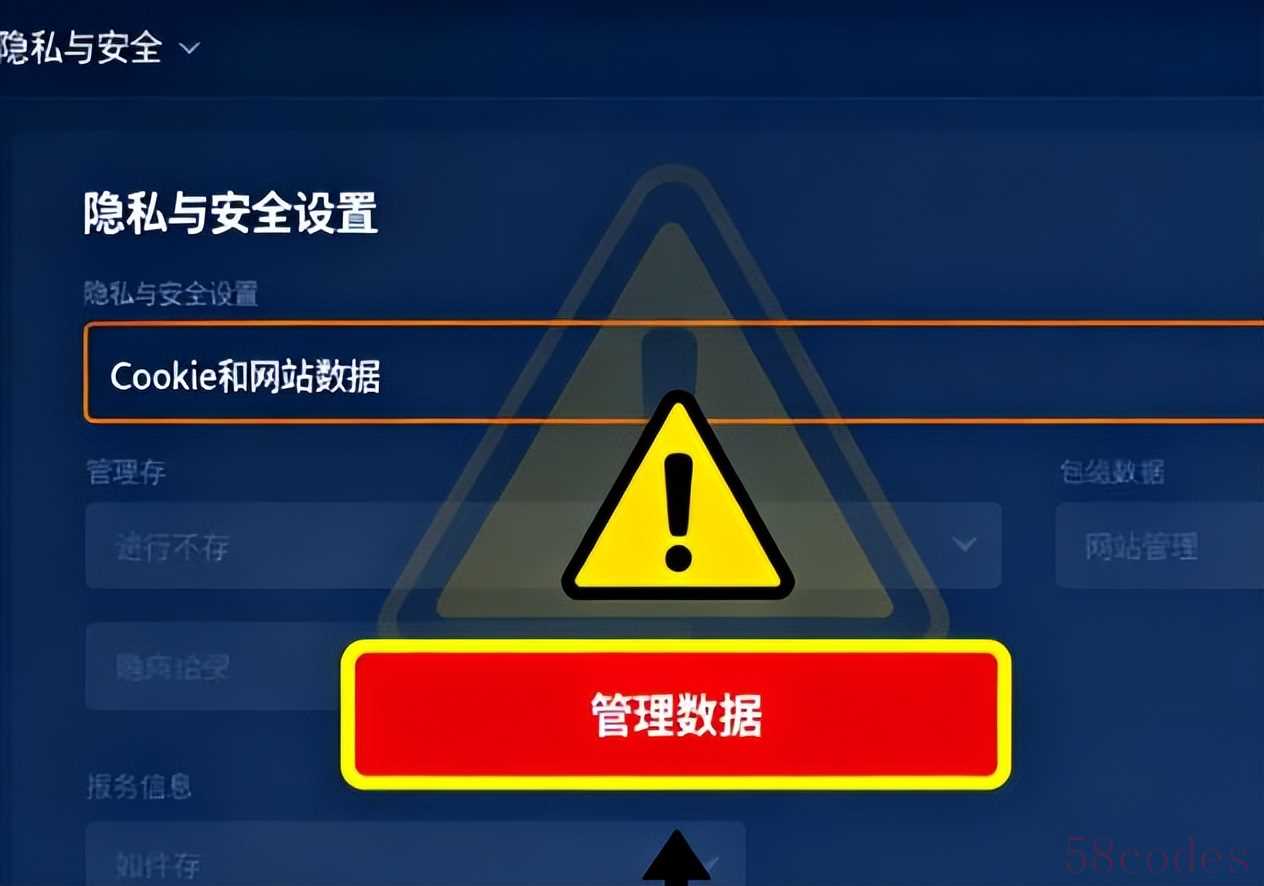 在左侧菜单中选择 “隐私与安全”,下滑至 “Cookie 和网站数据” 部分,点击 “管理数据”;