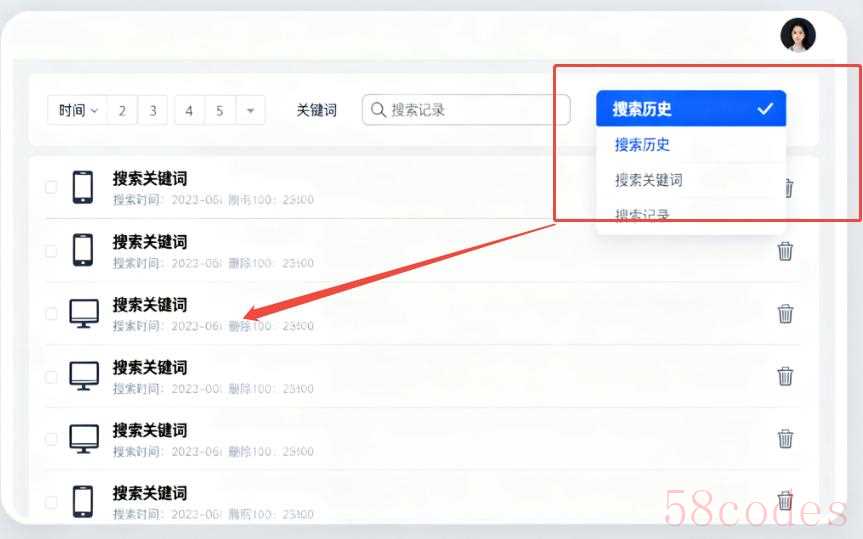 进入 “搜索历史” 页面后,系统会按时间顺序(从近到远)展示所有登录该账户后的搜索记录,包括电脑端、手机端等多设备的搜索内容;