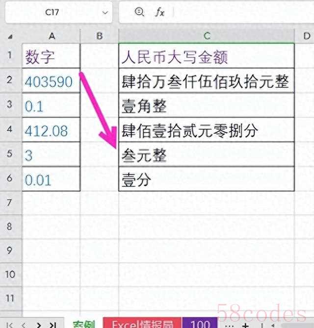 选中金额列,Ctrl+1→“特殊”→“人民币大写”,回车。