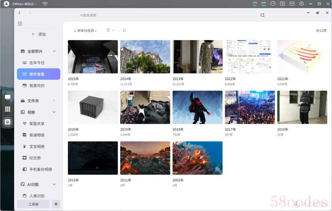 其次是它的极相册,无论是浏览、操作、照片分类还是AI识图功能都是NAS领域第一名,这点也是我的刚需,我现在买的iPhone17都是256G的,实况照片都可以备份并下载,而且支持查看EXIF信息。