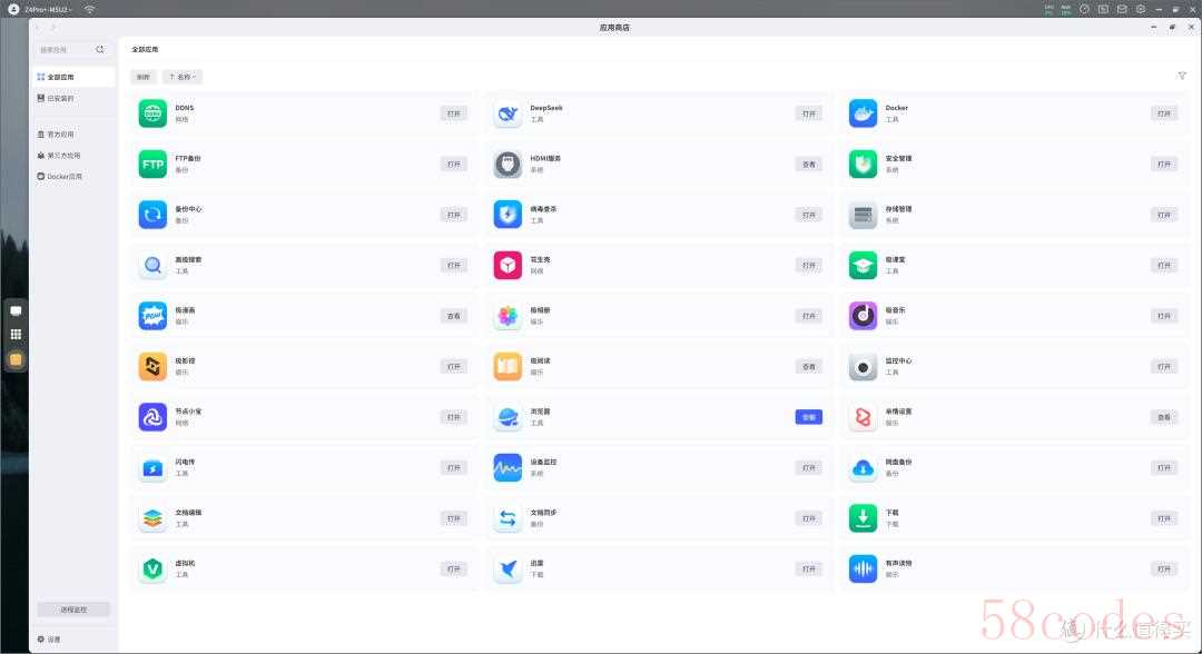 应用商店也很好,分为官方应用、第三方应用、Docker应用,我个人认为官方应用就够用了,不过它的Docker应用也不错,后续应该会封装很多好玩的放下里面,打开就能用,比较方便。