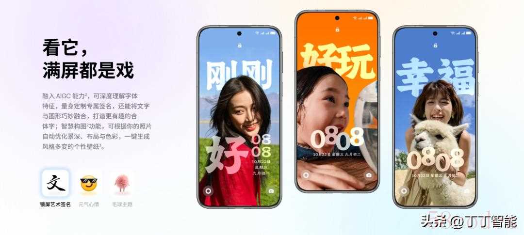 锁屏也玩出了新花样,靠 AIGC 搞了 “锁屏艺术签名”,系统能根据壁纸自动调景深、配色,生成专属签名,手残党再也不用对着锁屏编辑界面发呆。