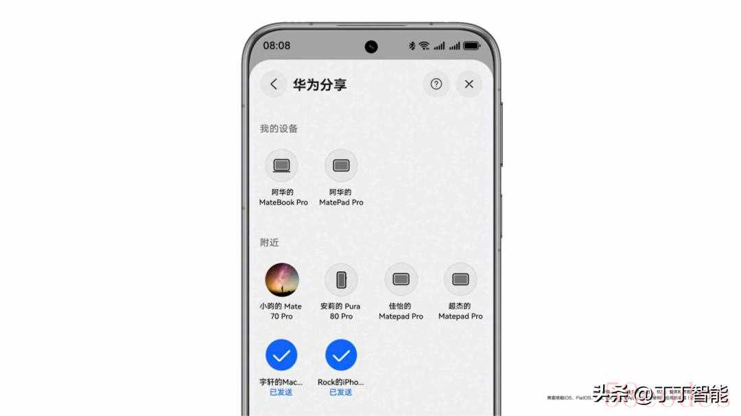 鸿蒙的互联一直是强项,这次鸿蒙 6 直接把 “分享” 玩出了花。自家设备之间,除了传统的 “碰一碰传文件”,还加了 一碰多,比如手机碰一下,能同时给平板、手表传照片。